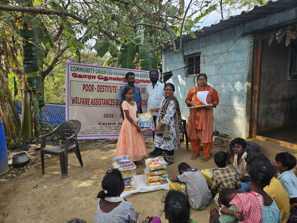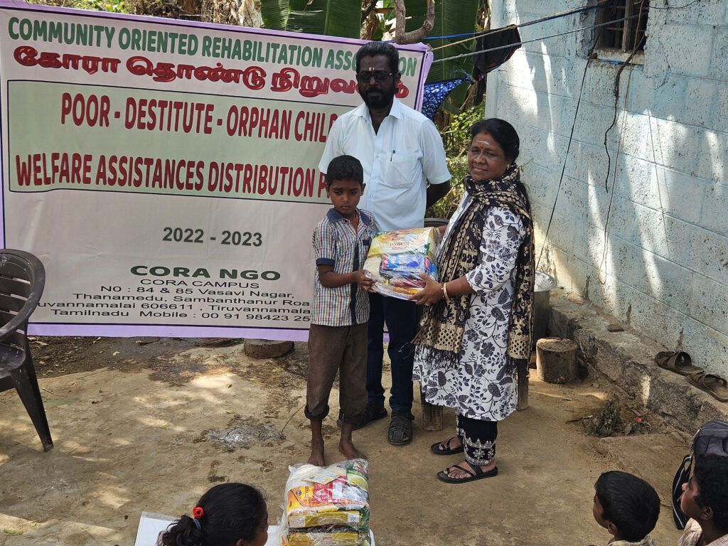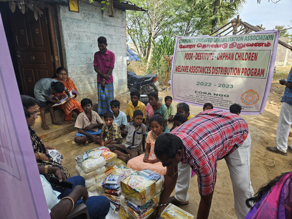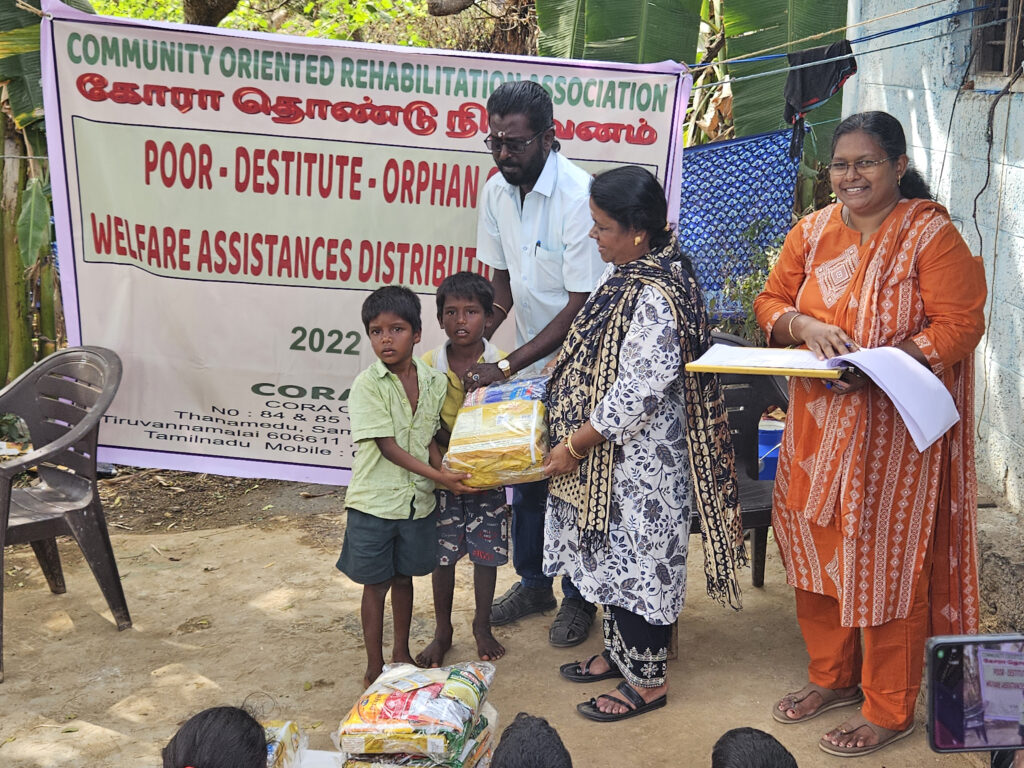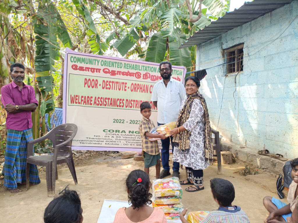 During the year 2022 – 2023 CORA had carried a few programs with support of Local Donations and Contributions from Board Members and Well Wishers . We at the outset thank them all for their continous support for carriying out the activities. Welfare Assistances were distributed to about 14 Poor Orphan Destitute Children and widow women in the project area.